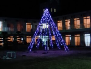 今年もイルミネーションの点灯を迎える時期となりました。中庭でイルミネーションの点灯式が行われ、職員のカウントダウンでイルミネーションが点灯すると「綺麗だ」と声が聞こえ雰囲気が盛り上がりました。